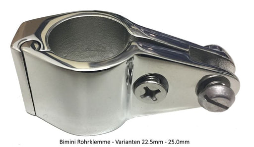 Stainless steel fitting - Bimini top mount - attachment Stainless steel V4A - Pipe clamp 22mm - 25 mm depending on selection - Central screw -...